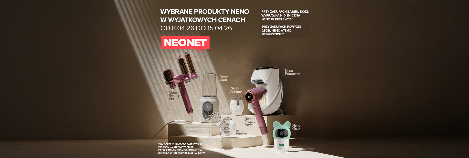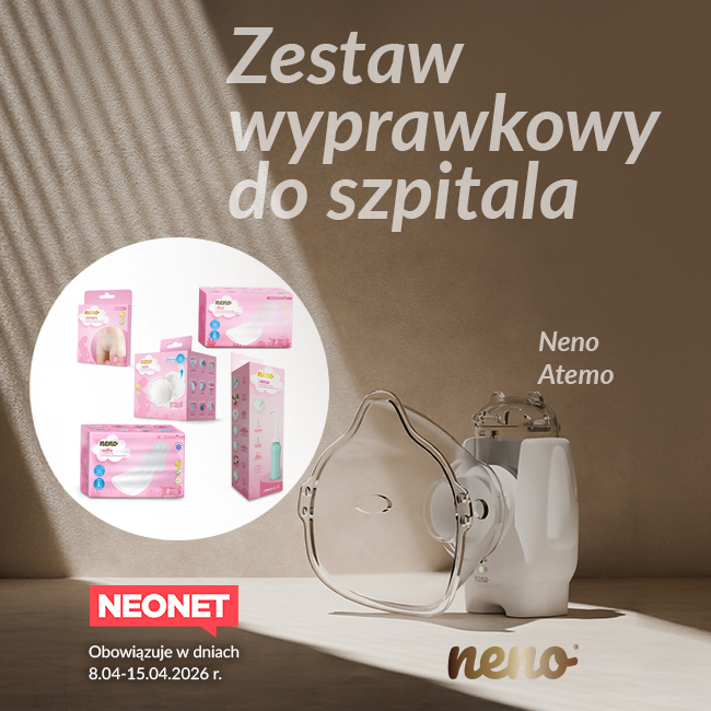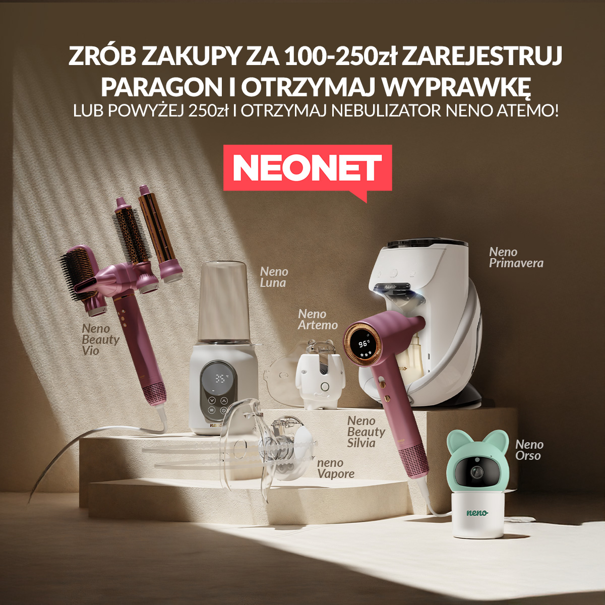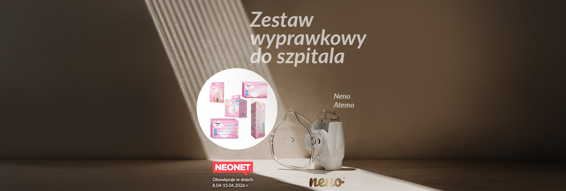 Zapraszamy do skorzystania z wyjątkowej akcji promocyjnej w dniach 8.04-15.04.2026. Kup produkty Neno w sklepie Neonet w czasie trwania promocji, zarejestruj paragon w formularzu poniżej i ciesz się darmową wyprawką higieniczną lub nebulizatorem Neno Atemo w prezencie!”